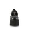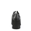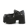 Ashes-33 brings a touch of the extraordinary to your footwear collection. Crafted with a 3.5″ chunky heel and a 2.25” cut-out platform, these Maryjane shoes blend classic style with audacious detail. Black vegan leather provides a sleek backdrop for the intricate silver stud embellishments. The hook & loop strap, detailed with triangle and O-ring elements and a distinctive coffin-shaped charm, adds a signature finish. Perfect for those who dare to stand out, Ashes-33 is an emblem of alternative elegance and a daring twist on the traditional.