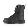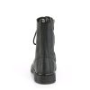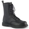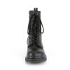 - 1 1/4″ (32mm) Stacked Flat Heel 10-Eyelet Lace-Up Mid Calf Unisex Vegan Boot