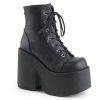 Step out in style with the Camel-203 ankle boot. Made from smooth black vegan leather and featuring a striking 5″ chunky heel and 3″ platform, these boots are perfect for adding a touch of edge to your outfit. The lace-up front adds a punk rock flair, while the metal back zip closure makes getting in and out of these boots a breeze. With a comfortable fit and an versatile style, the Camel-203 ankle boot is perfect for any occasion. Whether you’re looking to spice up your everyday wardrobe or dressing up for a night out, these boots are the perfect accessory for anyone looking to make a statement.