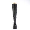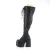 Get ready to slay the streets with our fabulous Camel-300WC boots! Featuring a towering 5″ chunky heel and a 3″ platform, these thigh-high boots come in a stunning black stretch vegan leather that is sure to turn heads. The lace-up design allows for a flexible fit while the full-length outside metal zipper ensures quick and easy access. With a comfortable wide calf and a bold, edgy style, these boots are perfect for any fashion-forward look. Step up your style game and make a statement with the Camel-300WC.