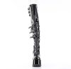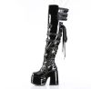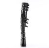 5″ (127mm) Chunky Heel, 3″ (75mm) Platform Back Ribbon Lace-Up Thigh-High Boot w/ Top Real Buckle Straps & Ornamental Harness Detail & Front Facing Belted Straps, Full Length Inner Side Metal Zip Closure