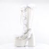 Introducing the Camel-311 knee-high boot, your new go-to for bold and edgy style. With a daring 5″ platform and eye-catching faux fur detailing across the lining and upper, these boots are perfect for anyone looking to add a hint of warmth to their outfit. The full inner side zipper allows for easy on and off, while the striking white color adds a touch of boldness to any outfit. Whether you’re dressing up for a night out or spicing up your everyday wardrobe, the Camel-311 has got you covered. Step out in style and make a statement with these fierce and unforgettable boots.