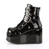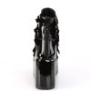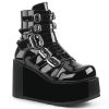 Step into the spotlight with the Concord-57 ankle boots, where fashion meets punk flair. Standing tall on a 4 1/4″ platform, these boots boast a striking black patent finish that shines in any setting. The boots are adorned with multiple buckle straps, adding layers of texture and depth, while the back metal zip closure adds a practical touch to the design. Whether paired with skinny jeans or a mini dress, these boots are perfect for adding a bit of edge to your look.