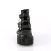 Step into the spotlight with the Creeper-260, where edgy meets adorable in a single pair of boots. Positioned on a bold 3-inch platform, this ankle-high creeper boot combines open front lacing with an irresistible trio of heart-shaped spider web buckle straps. The black vegan leather construction speaks to both style and sustainability. An ideal choice for anyone looking to add a touch of intrigue to their look, the Creeper-260 seamlessly merges gothic charm with punk rock attitude.