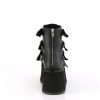 Make a bold statement with our Damned-105 ankle boots. The sleek design is matched only by the fierce attitude these boots bring to any outfit. With a chunky 3.5″ platform and four buckle straps featuring metal plates, these ankle boots are built to stand out. The back metal zip closure ensures an easy fit, even when you’re in a hurry. The black vegan leather material adds an extra level of edge to these boots, making them the perfect choice for anyone in search of a rebellious, alternative style that’s sure to turn heads.
