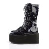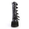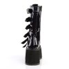 Elevate your style with the Damned-225 mid-calf boots. With a 3 1/2″ platform and a lace-up front, these boots are the perfect combination of edgy and chic. The six cone-studded buckle straps add a touch of rebelliousness, while the inside metal zip closure ensures easy on and off. Crafted from black hologram vegan leather, these boots not only look stunning but also make a statement about your ethical values. Embrace your individuality and rock the Damned-225 boots with confidence.