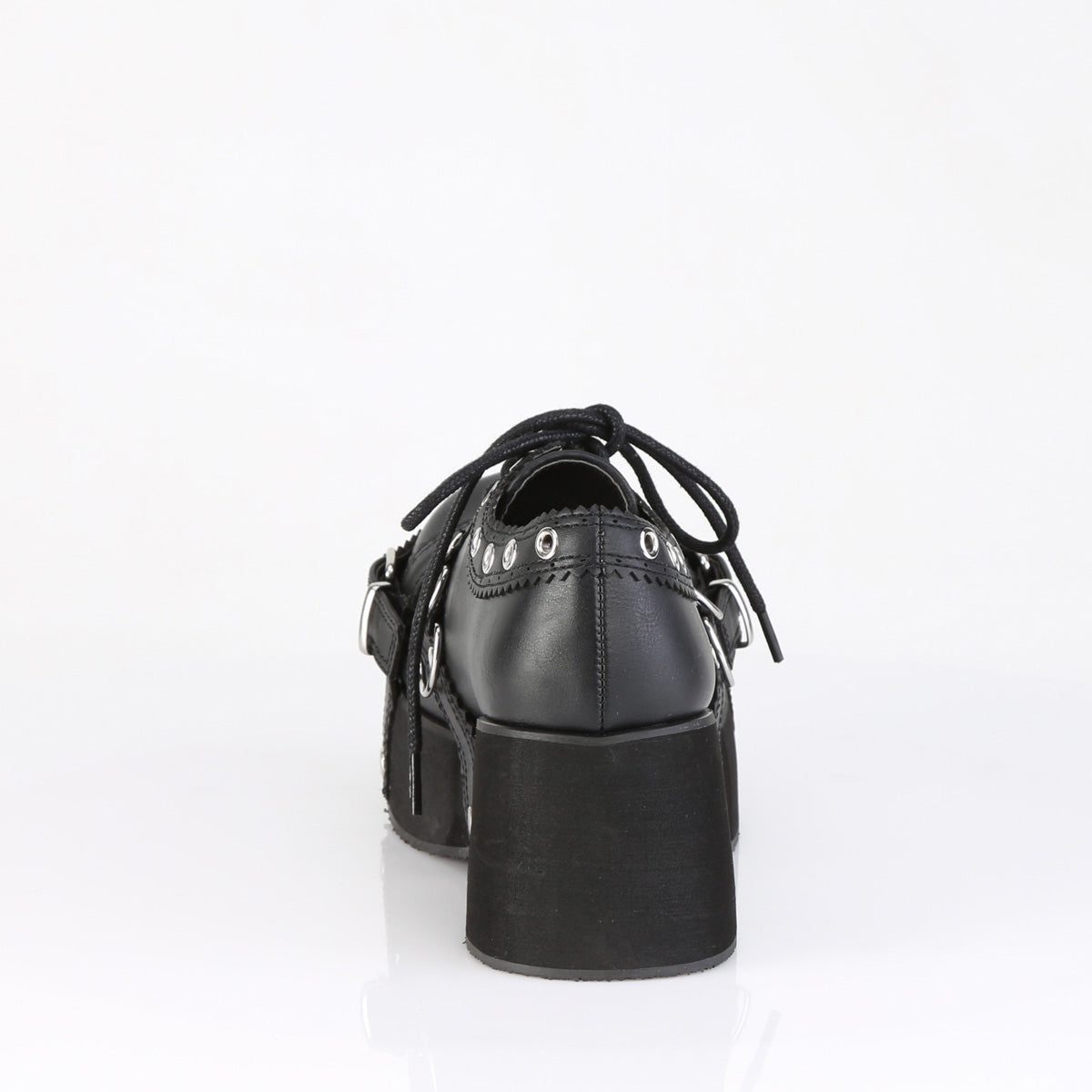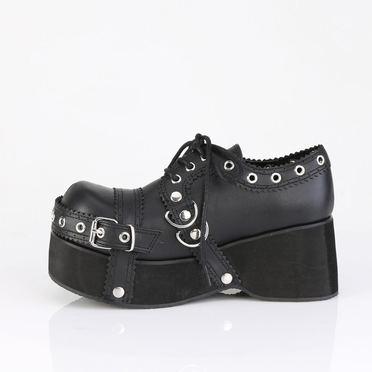 Step into the Dank-28, a lace-up oxford with just the right amount of attitude. The 3 1/4″ platform gives you height without the hassle, while the buckle strap and eyelet details add a sharp, structured look. O-rings and scalloped trim give these shoes a little extra personality, all wrapped up in sleek black vegan leather. Whether you’re pairing them with ripped jeans or a mini skirt, these platforms are built to stand out—without trying too hard. Easy to wear, impossible to ignore.