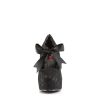 Step out in bewitching glamour with the Demon-11 Mary Jane pumps, a harmonious blend of sultry and sweet. With a towering 5″ heel and a supportive 1.5″ platform, these black satin beauties are accented with an elegant black lace overlay. The classic Mary Jane design is reimagined with a seductive edge, topped with an adorable bow detail for a demure touch. Fasten the buckled strap and confidently strut into any room, knowing that your footwear is the perfect fusion of dark romance and timeless style.
