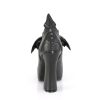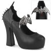 Introducing the Demon-18, a pump that encapsulates the essence of the night. With a towering 5″ heel and a hidden 1.5″ platform, these Mary Jane pumps redefine boldness. The design is elevated with an elastic strap, featuring a prominent metal bat that adds a hint of mystery. The back of the heel captivates attention with bat wing details, adorned with cone spikes for a daring look. Constructed from black vegan leather, these pumps are the ultimate expression of dark elegance for any occasion.