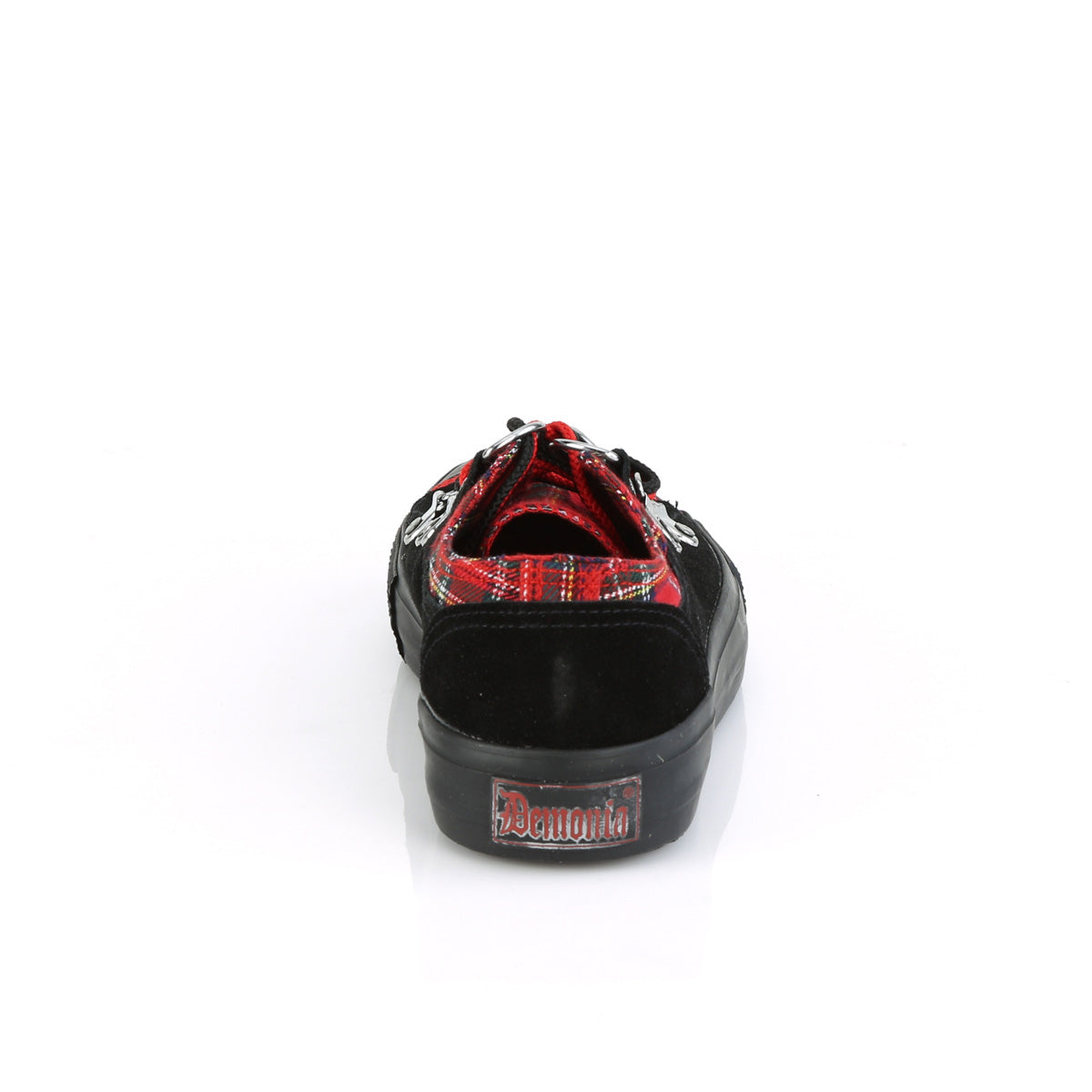 Discover the Deviant-05, an exceptional sneaker that embodies the spirit of defiance and originality. Available exclusively at DemoniaCult.com, this shoe merges the luxurious texture of black suede with the iconic look of red plaid, creating a footwear masterpiece for the bold and the daring. As a limited edition release, the Deviant-05 offers a rare opportunity to express your unconventional style through a piece that transcends the ordinary. With its distinctive design and limited availability, this sneaker is a must-have for those who live to stand out.