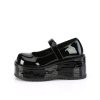 Elevate your shoe game with the Dollie-01 platform Maryjane, a glossy black patent showstopper. The 3 1/4″ platform adds the perfect amount of height to elongate your legs, while the hook n’ loop strap allows for a personalized fit. Whether you’re hitting the town or simply upgrading your daytime look, Dollie-01 brings the perfect blend of edge and classic charm to any outfit.