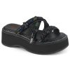 Elevate your style with the Emily-07 platform strappy sandals. Featuring a 2″ platform, these sandals are not only trendy but also comfortable to wear all day and night. The eyeletted criss-cross straps create a unique and alluring look, while the ornamental bat buckle details add a touch of individuality. Crafted with black vegan leather and holo patent finish, these sandals give off a striking and contemporary vibe. Perfect for casual outings, parties, or even a night on the town, the Emily-07 sandals are a must-have addition to any alternative fashion enthusiast’s collection.
