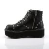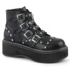 Unleash your inner rebel with our Emily-315 ankle boots. These boots feature a unique 2″ platform design along with a lace-up front and buckle strap detailing. The O-ring on the top strap and the heart-shaped stud detailing add the perfect finishing touches to these edgy boots, while the black vegan leather ensures a timeless and dramatic look. The inside zip closure enables easy on and off while ensuring a perfect fit. Emily-315 is perfect for anyone looking to make a bold statement and add a touch of rock-and-roll to their style.