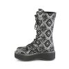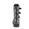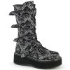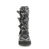 Introducing the Emily-322, a stunning addition to any edgy wardrobe with its 2″ platform that adds just the right amount of height. These mid-calf boots boast bat buckle straps that give a nod to gothic charm, set against a black-silver faux nubuck leather that commands attention. Perfect for those seeking a blend of style and dark allure in their footwear collection.
