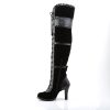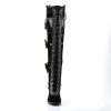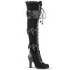 Discover the allure of the Glam-300 over-the-knee boot, a captivating choice for the fashion-forward individual. Standing on a 3 3/4″ heel with a 1/2″ platform, these boots offer both height without sacrificing wearability. The design features a striking lace-up front, while straps with scalloping and bow details provide an elegant contrast. Made from black vegan leather-velvet, and equipped with a practical 1/3 inner side zipper, the Glam-300 seamlessly blends gothic charm with lolita sweetness. Whether paired with your favorite dress or tailored pants, these boots will elevate any look.