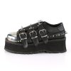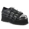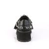 If you’re looking for a pair of shoes that will make you stand out from the crowd, Gravedigger-03 has got you covered. These lace-up oxfords feature a 2 3/4″ platform and a silver chrome-plated metal toe cap. Spike and flat stud details add a touch of punk flair, while the coffin-shaped zippered buckle strap with skull head zipper head creates an undeniable gothic vibe. Best of all, the black vegan leather construction ensures that these shoes are as comfortable as they are stylish. Add a touch of edge to your wardrobe with Gravedigger-03.