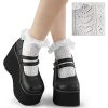 One pair of white heart net ankle high socks with ruffle trim. Pair these with your favorite Demonia shoes to craft the perfect look.
