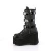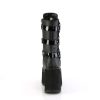 Welcome the Kera-110 into your collection, a striking mid-calf boot that commands attention. Engineered with a robust 4 1/2″ platform, this boot features sleek black vegan leather-patent, setting the stage for style that speaks volumes. The outer side showcases a studded harness detail, offering an adjustable fit with interior hook n’ straps. For a signature finish, the tongue is adorned with a branded metal plate, enhancing its urban appeal. With an inside metal zipper for ease of wear, the Kera-110 is as practical as it is stylish.