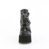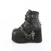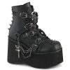 If you love boots that do the talking for you, meet the Kera-68. The 4.5″ platform gives serious lift, while the lace-up front lets you adjust as needed. A harness strap with pentagram accents, O-rings, and spike studs amps up the detail, and the hanging chains swing with every step. A hidden side zip keeps things sleek, and the black vegan leather keeps it clean and modern. Whether you’re dressing up or keeping it casual, these boots bring the energy—no extra effort needed.