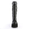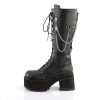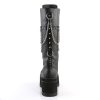 Elevate your style with the Ranger-303 knee-high boots. Boasting a 3 3/4″ heel and a 2 1/4″ platform, these boots are made to turn heads. The lace-up front adds a touch of boldness, while the silver chains and studded back strap with O-rings exude a rebellious spirit. Crafted from black faux leather, these boots are both eco-friendly and stylish. The inside zip closure ensures a secure fit, making these boots perfect for nights out, concerts, or when you simply want to showcase your alternative fashion sense.