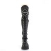 Add some edge to your wardrobe with the Renegade-320 over-the-knee boots. These boots feature a 2.5″ tiered platform, striking shield top strap with chain details, and an eye-catching combination of studs and straps. The full inner side metal zip closure makes for easy on and off, while the black stretch vegan leather offers a comfortable fit and trendy style. Perfect for those who seek to stand out, the Renegade-320 boots are the ideal choice for a concert, night out, or even a fashion-forward work wardrobe. Dare to be different and embrace your rebellious side with these bold over-the-knee boots.