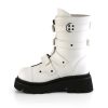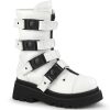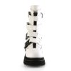 Introducing the Renegade-55, a dynamic addition to any fashion-forward wardrobe. This calf-high boot stands out with its white vegan leather and a 2 1/2″ tiered platform, adding both height and attitude to your ensemble. Strappy quick-release plastic buckle straps offer an edgy touch as well as versatility in fit, while a central metal zipper brings a blend of utility and style. Whether paired with your favorite jeans or a daring skirt, the Renegade-55 is designed to catch eyes and turn heads wherever you go.