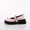 Express your love for feline friends with the Renegade-56 Maryjanes. The embroidered cat face on the toe and ears on the strap add a unique twist to this classic style. With a bold pink vegan patent leather finish and a 2 1/2″ tiered platform, these shoes will add both height and personality to your outfit. The Renegade-56 is perfect for anyone who wants to show off their individuality while making a comfortable and stylish statement.