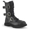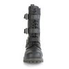Discover the perfect blend of punk and practicality with the Riot-12BK boot. This unisex design showcases an attention-grabbing 12 eyelet lace-up front and triple buckle accents for a customizable fit and a look that demands attention. Crafted from black vegan leather and featuring a robust steel toe, this boot is as durable as it is striking. A rubber sole provides stable footing, making this boot an ideal choice for those who lead the way in fashion and function.