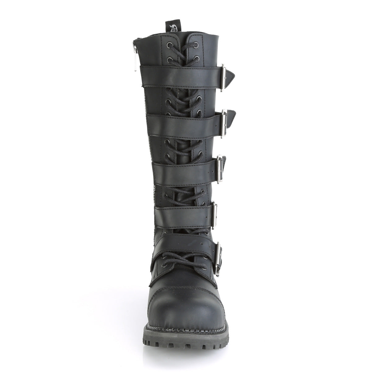 • Demonia 18 Eyelet Unisex Vegan Steel Toe Lace-Up 5 Buckle Knee Boot
