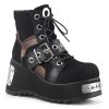 Elevate your footwear collection with the Scene-53, a fusion of boldness and edgy design. Set on a striking 3.5″ metal-plated platform, this lace-up ankle boot boasts a black vegan leather and fishnet fabric upper, accented with an oversized grommet on the tongue for an unforgettable look. The grommet buckle strap adds an extra touch of attitude, making these boots a standout choice for any occasion where making an impression is key.