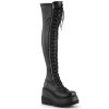 Unleash your inner rebel with our striking Shaker-374 thigh-high boots. Designed with a 4 1/2″ wedge platform, lace-up front, and black stretch vegan leather material, these boots are perfect for anyone looking for comfort and style. The full-length outside metal zipper ensures easy on and off, allowing you to step out in style with ease. Whether you’re looking to spice up your everyday wear or make a statement at your next concert or cosplay event, the Shaker-374 is sure to turn heads. Don’t wait any longer, add these iconic boots to your ensemble today and elevate your style to the next level.