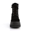 Elevate your shoe game with the Shaker-52, a pair of ankle boots designed for the bold at heart. Towering with a 4 1/2″ wedge platform, these boots balance style and practicality seamlessly. The lace-up front and double buckled ankle straps add security with a fashionable edge, while the black velvet finish promises a plush, vampy vibe. Complete with a convenient inside zip closure, the Shaker-52 boots are for those ready to take their style stand.