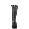 Step up your fashion game with the Shaker-65WC, the perfect knee-high boot for those with wider calves. Featuring a 4 1/2″ wedge platform and a full-length back metal zipper closure, this boot combines style and practicality. The black stretch vegan leather material makes these boots comfortable for all-day wear, while also being environmentally conscious. Whether you’re dressing up for a night out or looking for an edgy touch to your everyday wardrobe, the Shaker-65WC is the perfect choice.