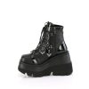 Be the ultimate badass in our striking Shaker-66 ankle boots. The 4 1/2″ wedge platform and bat charms command attention, while the removable fang and bat charm details add a unique, personalized touch that is both versatile and expressive. These boots feature inner side zip closure for easy on and off, making them perfect for any occasion. Designed with contrasting panel designs on vamp, the Shaker-66 combines function and style, making them a go-to choice for anyone looking to add a touch of edge to their wardrobe.