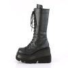 Elevate your style with the Shaker-72 mid-calf Boot. These fashion forward boots feature a 4 1/2″ (114mm) wedge platform and edgy lace-up front in classic black vegan leather. With full-length inside zip closure, Shaker-72 ensure easy on and off for a more convenient wearing experience. Perfect for everyday wear or special occasions, these versatile boots will become a staple in your shoe collection. Make a statement and channel your inner rebel with the Shaker-72!