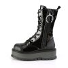 Take on the day with confidence in the Slacker-220 platform boots, an edgy addition to your footwear collection. Set upon a solid 2″ platform, these lace-up mid-calf boots are a statement of attitude and style. Complementing its striking lace-up front is an oversized, eye-catching O-ring pull zipper on the exterior for effortless on-the-go wearability. These boots are not just about looks; made from sustainable black vegan leather, they’re a choice that feels as good as it looks. Step powerfully into sustainable style with the Slacker-220.