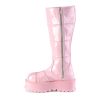 The Slacker-230 boots are a dream come true for those who dare to be different. Standing on a 2″ platform, these knee-high boots boast a striking baby pink hologram patent exterior. The artful patching details add depth and intrigue, ensuring these boots are anything but ordinary. Designed with a full-length inside metal zip closure, they offer both style and practicality, perfect for infusing a pop of color and personality into any ensemble.