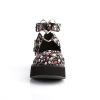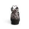 Add a touch of floral fancy to your footsteps with the charming Sprite-02 Mary Jane platforms. Standing on a 2 1/4″ platform, these shoes are designed for those who love to stand out. The wrap-around ankle strap, accented with a heart O-ring detail, complements the vivid floral fabric, creating a look that’s both sweet and edgy. Perfect for pairing with your favorite summer dress or adding a whimsical twist to casual denim, the Sprite-02 is a versatile must-have for your alternative shoe wardrobe.
