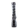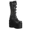 Elevate your alternative style with the Stack-308 knee boot. Standing tall at a 7″ platform, this boot combines elements of goth, cyber, gogo, and punk fashion for a truly unique and edgy look. The zig zag strap detailing adds an extra touch of intrigue, while the full inner side zipper ensures easy on and off. Crafted from black vegan leather, these boots are both cruelty-free and strikingly stylish. Stand out from the crowd and make a bold statement with the Stack-308 knee boot.