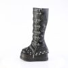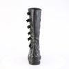 The Stomp-223 isn’t just a boot—it’s a statement. A chunky 4 ¾” wedge platform and flared bell-bottom design give these knee-highs serious presence, while decorative buckle straps and a faux back zip add a retro-meets-rock vibe. Studs line the flared cuffs for a little extra punch, all wrapped up in smooth black vegan leather. Made for those who love standout style without sacrificing comfort, these boots are ideal for dancing, strutting, or just standing out. Step into the Stomp-223 and own the spotlight.