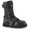 The Valor-220 unisex mid-calf boots were made for those who are looking to show off their adventurous sense of style. Complete with ornamental metal zippers and two buckle straps, as well as an inside metal zip closure, these boots are as functional as they are fashionable. Their black vegan leather construction is sleek and stylish, making them perfect for any alternative outfit. Choose Valor-220 for a standout look that is both bold and edgy.