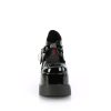 Step into the enigmatic allure of the Void-38, a Maryjane with a twist that speaks to the heart of darkness. This shoe boasts a towering 5″ wedge platform, cloaked in gleaming black patent, elevating your presence and your style. At its core, a heart-shaped spider web buckle strap weaves a tale of mystery and charm, complemented by exquisite scallop edge details. Perfect for nights spent under the moon’s glow or for adding a touch of intrigue to your daytime look, the Void-38 is more than just footwear; it’s a statement.
