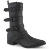 Elevate your dark ensemble with the Warlock-110-C boots, where fashion meets the ominous. This mid-calf masterpiece features a modest 1.5″ block heel and a chic pointed toe, embracing the beloved winklepicker design. The boots awe with their unique details – namely, multi coffin buckle straps that demand attention while affirming your place in the goth realm. Crafted from premium black vegan leather and completed with an inside zip closure, these boots are a testament to style and ethics intertwined.