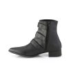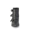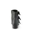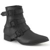 Step into the night with the Warlock-50-C, the quintessential boot for those who walk on the shadowy side of style. This ankle boot captivates with a 1 1/2″ block heel and a sharp pointed toe that embodies the classic Winklepicker silhouette. Adorned with triple coffin buckle straps, it whispers tales of the arcane and mysterious. Crafted from black vegan leather and featuring an inside zip closure, the Warlock-50-C melds comfort with the macabre, making it a staple for any darkly inclined wardrobe.