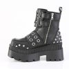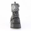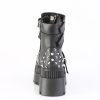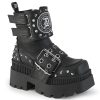 If your footwear could talk, the Wrath-58 would have a lot to say. The 3 1/4″ chunky heel and 2″ platform mean business, while the square toe keeps things clean and modern. A standout double grommet buckle and studded upper give it some bite, and the ‘Demonia’ patch on dual hook-and-loop straps adds a signature touch. Made in black vegan leather, these boots are built to last and ready to move—whether that’s through a crowd, down the street, or straight into your everyday rotation. No fuss, just attitude.